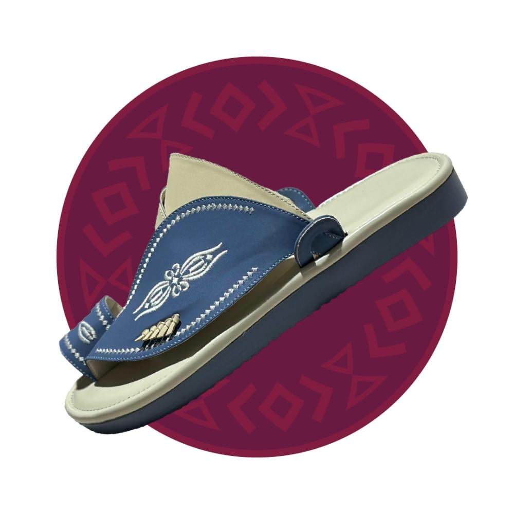 يجمع حذاء شرقي رجالي مطرز من متجر نوماس بين التصميم التراثي الأنيق والأصالة والراحة في قطعة واحدة تعكس الذوق العربي الأصيل. حيث يأتي بمزيج لوني جذاب من الأزرق الهادئ مع البيج، مزين بتطريز تقليدي متقن يمنحك حضور مميز وإطلالة راقية في كل مناسبة.
