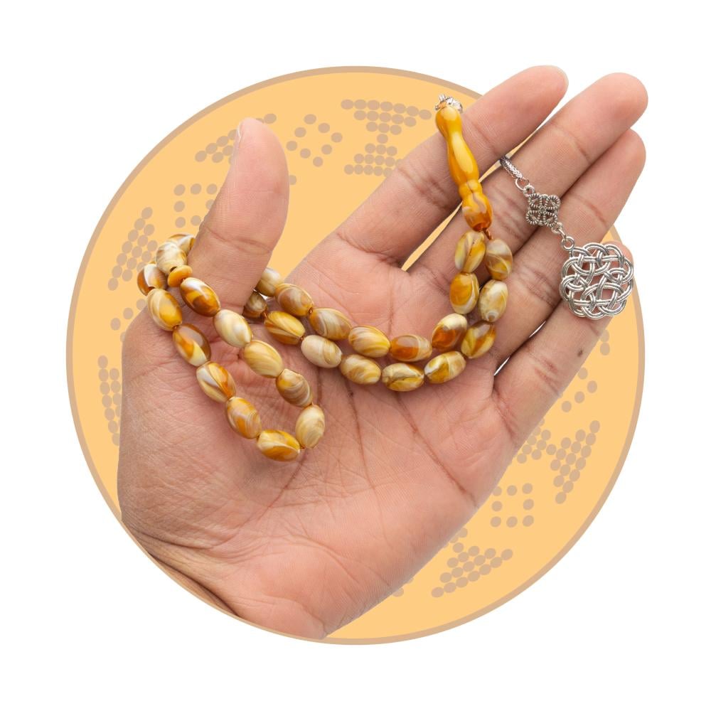 - تصميم بيضاوي للحبّات يساعد على سهولة العد والتسبيح.