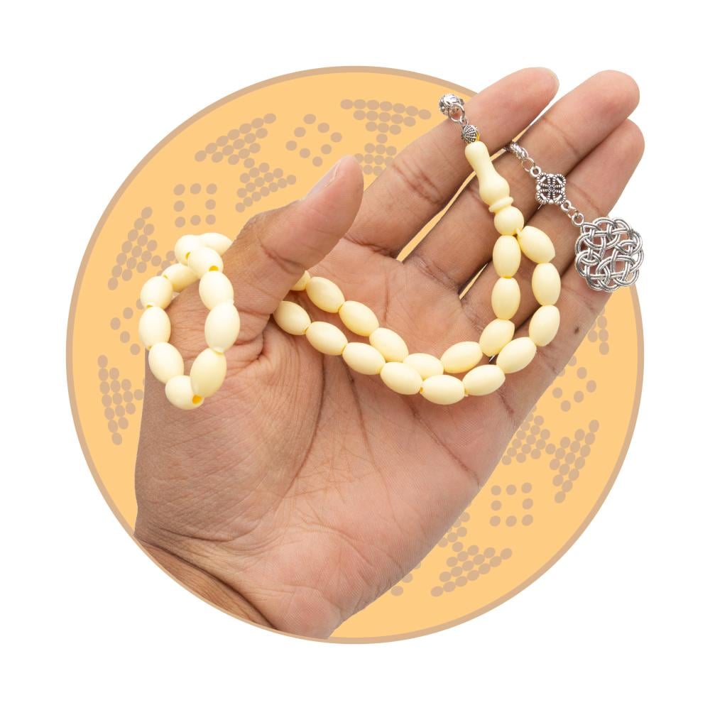 - 33 خرزة متناسقة الحجم والملمس تساهم في تسهيل عملية التسبيح والتركيز في الذكر.