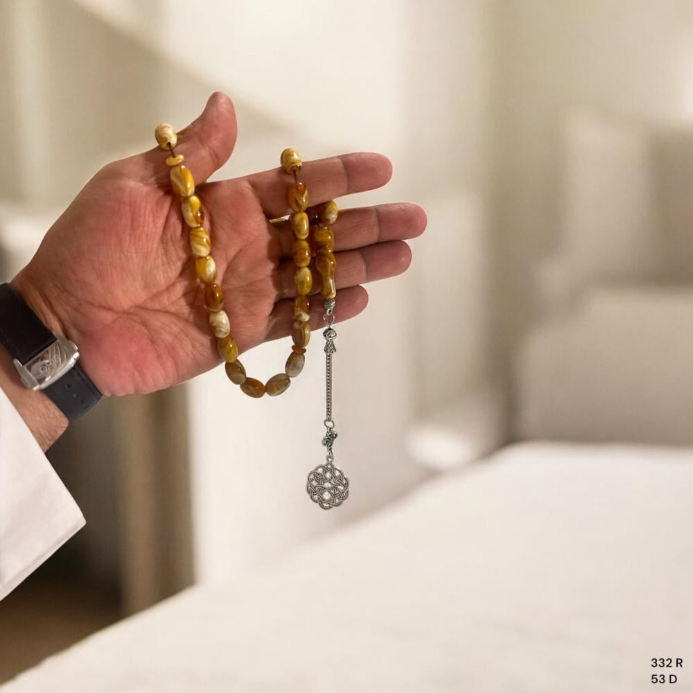 سبحة أنيقة بتصميم عصري وحبات متناسقة و انسيابية (٣٣ خرزة)، تضيف لك لمسة فاخرة وأناقة يومية، لونها كما هو بالصورة قد يختلف قليلًا نسبة إلى الإضاءة وطريقة التصوير ..✨📿